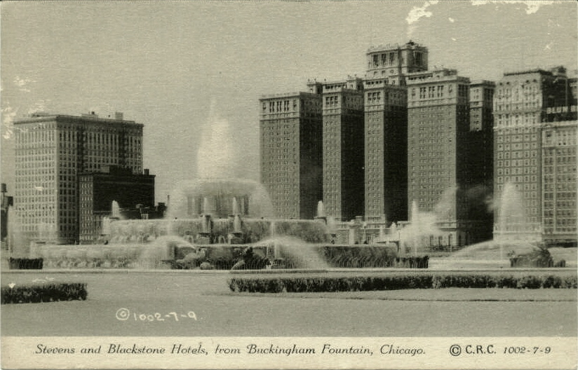 Stevens Hotel and Buckingham Fountain