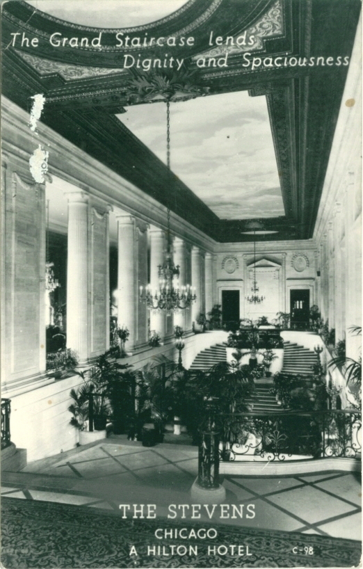Stevens Hotel - Grand Staircase c. 1950